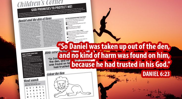 Just think about how scared you would be if you were thrown into a den of lions! This is exactly what happened to Daniel. You can read about what happened to Daniel in your Bible, in Daniel 6:1-23. On this page you can read about Daniel and do some of the activities about his story. The most important thing you have to remember is that God has promised to protect you – just like He protected Daniel.